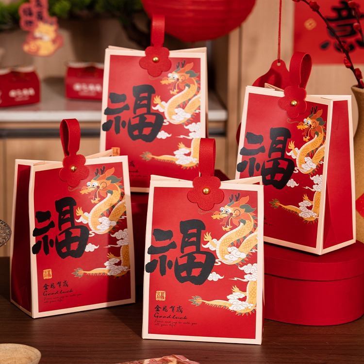 2024年新年龍年児童幼稚園ニット袋プレゼント袋キャンディー菓子雪花ショートニングプレゼント袋