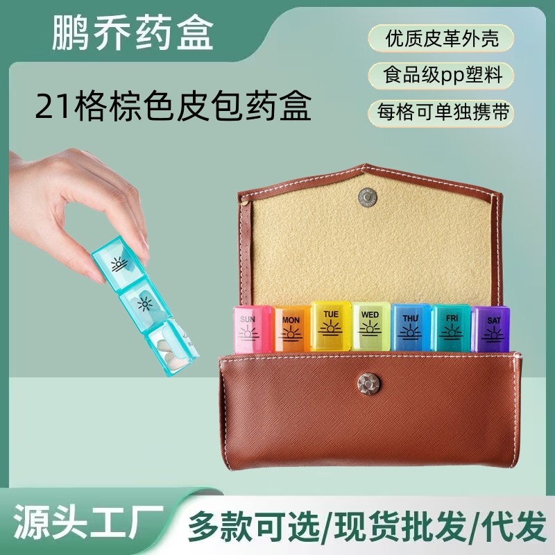 メーカー直販一週間バッグ皮挟み薬箱、14格薬箱、7日間薬箱、ノート薬箱