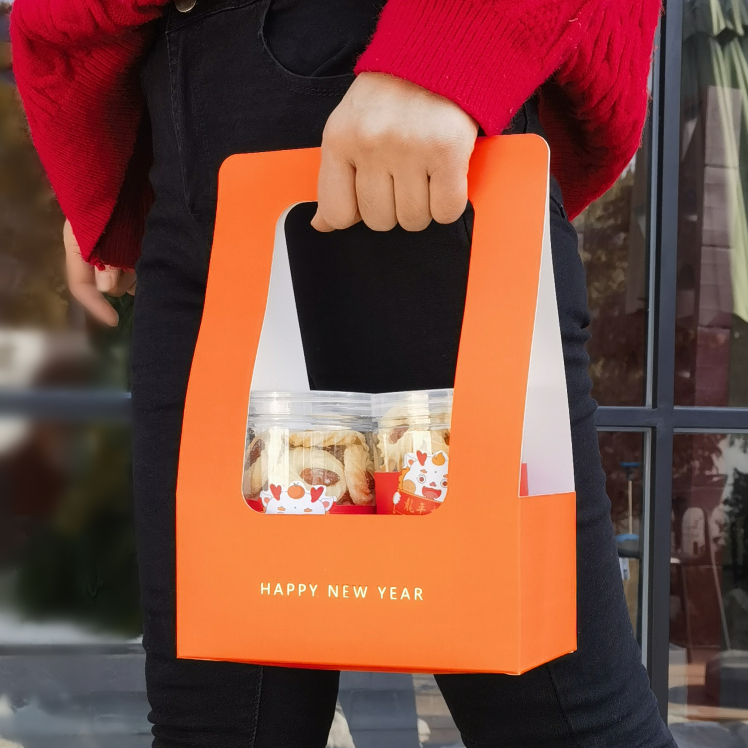 馬年春節ギフトボックス、焼き菓子、雪花餅、ナッツ瓶入り、引き出し式ボックス、持ち運び可能なギフトバッグ