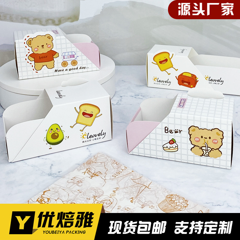 ランチバッグ包装箱地鶏ケーキシュークリーム小パン卵子牛乳小ケーキ牛角包麻芋包装箱