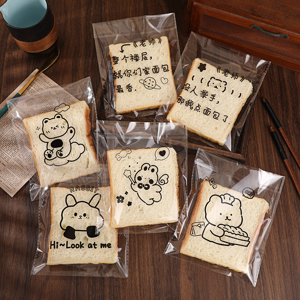 オリジナルかわいい透明パン袋自封自封自粘袋焙煎貝果可讃スライストースト欧包外包装