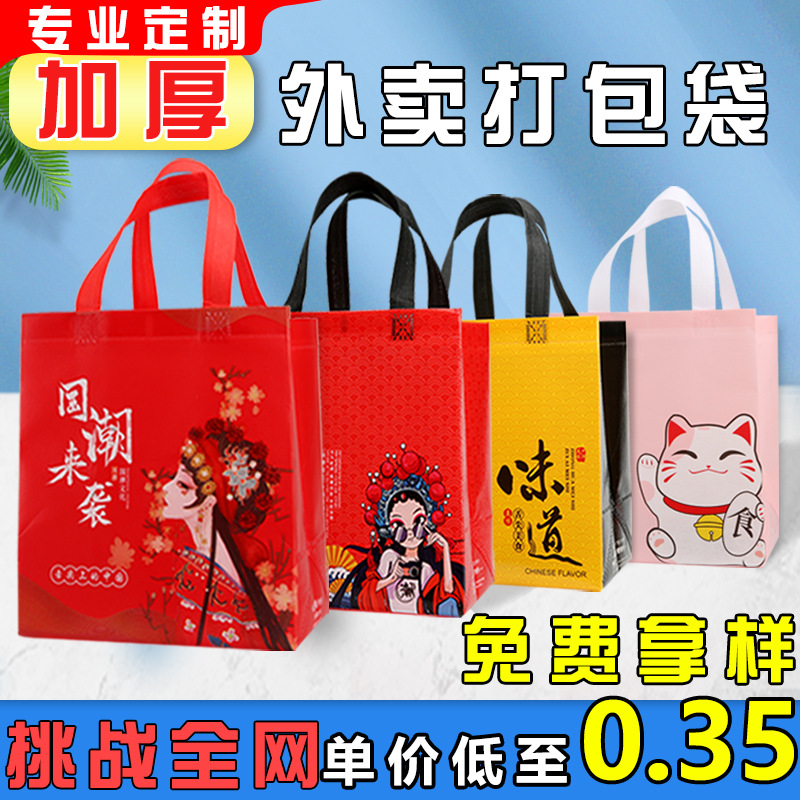 テイクアウト梱包袋商用卸売り飲食ミルクティーバーベキュー手提げ袋防水防油厚手不織布手提げ袋