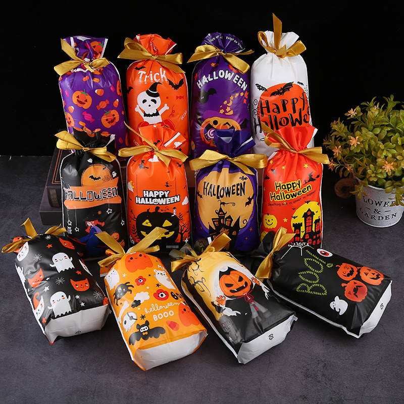 現物国境を越えたハロウィーンリボン巾着袋キャンディー雪花ショートニング食品袋プレゼント袋50個