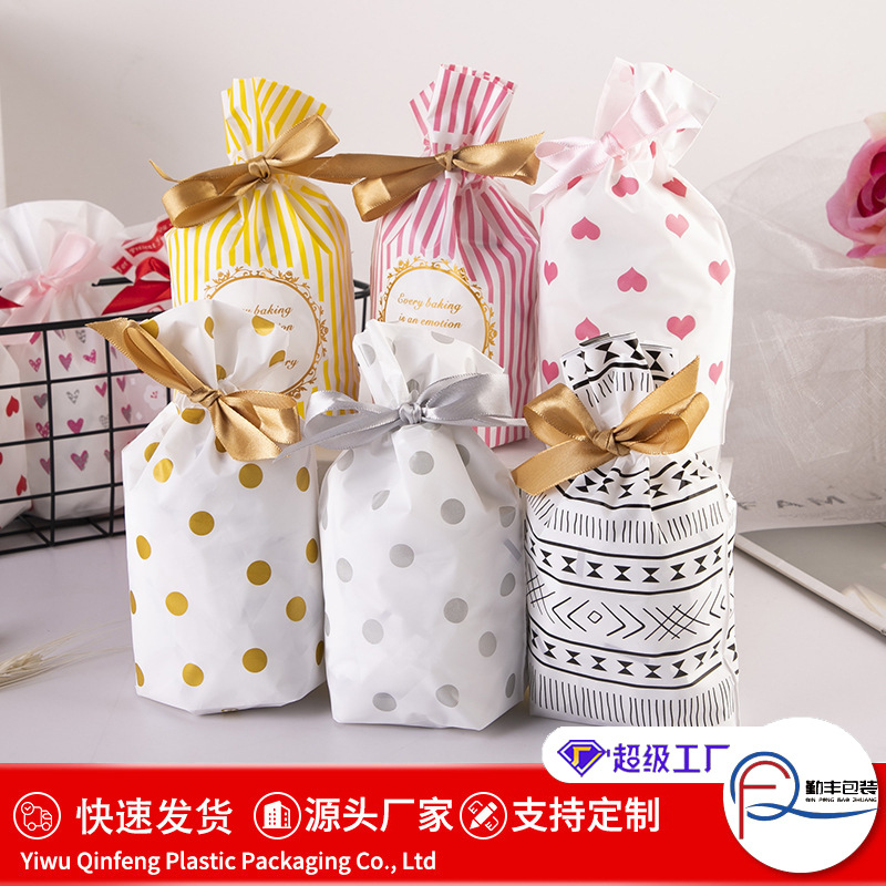 雪花ショートニング包装袋クリエイティブトランペットリボン巾着袋牛圧延糖牛刺餅袋キャンディー袋束袋