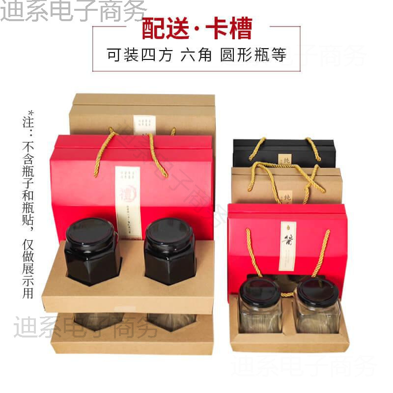 四角い六角形のガラスボトルギフトボックス氷砂糖雪秋梨レモンペースト野生土蜂蜜外箱