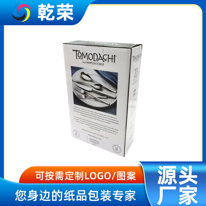 食品食器カラーボックス印刷工場段ボール厚手スクエアボックスuv印刷窓開けカトラリーナイフとフォークカラーボックス
