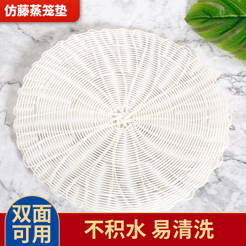 藤の円形の蒸籠を模して、蒸籠を敷いて、底にくっつかないようにします。