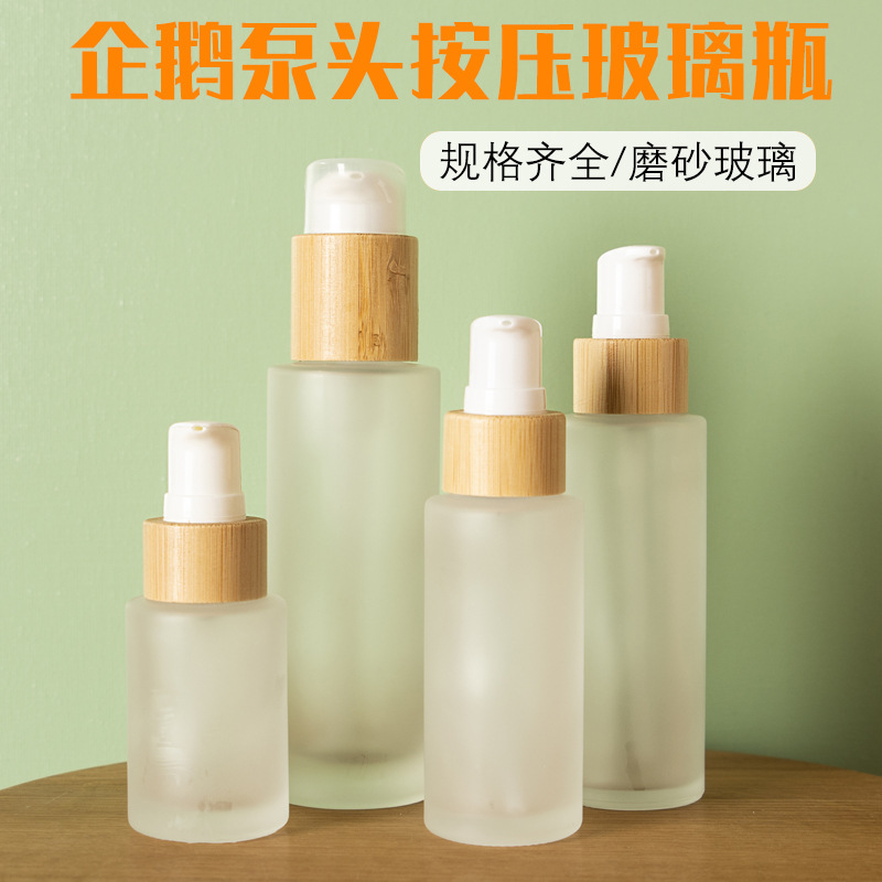 すりガラスのペンギンの口はローションの瓶の台所のソースを押して分けて入浴します。