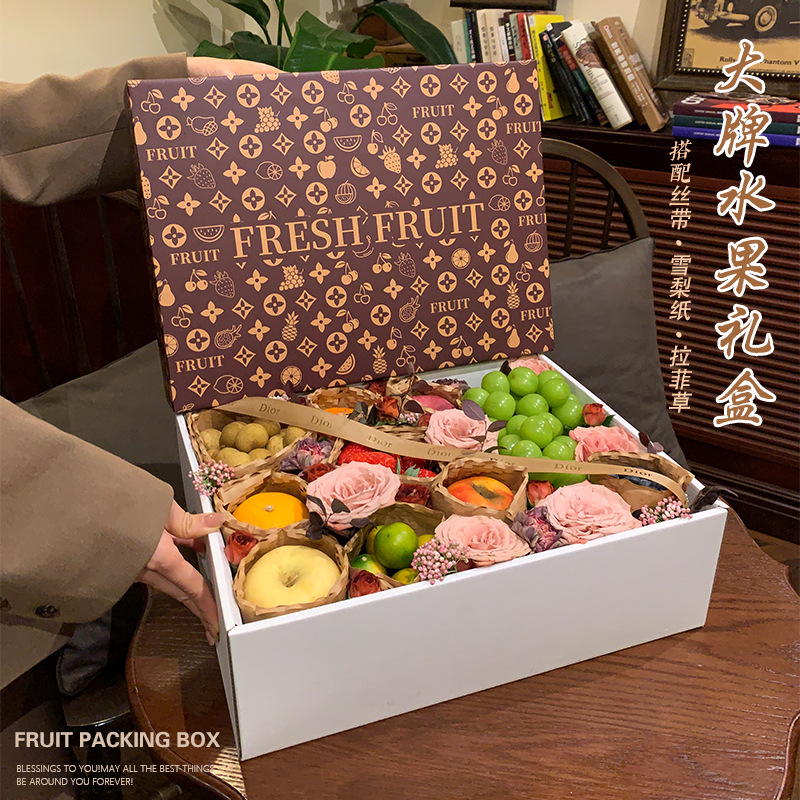 果物のギフトボックス10斤の高級なミックス新鮮な果物の包装箱のブランドの創造的な花の空の箱にロゴを印刷します