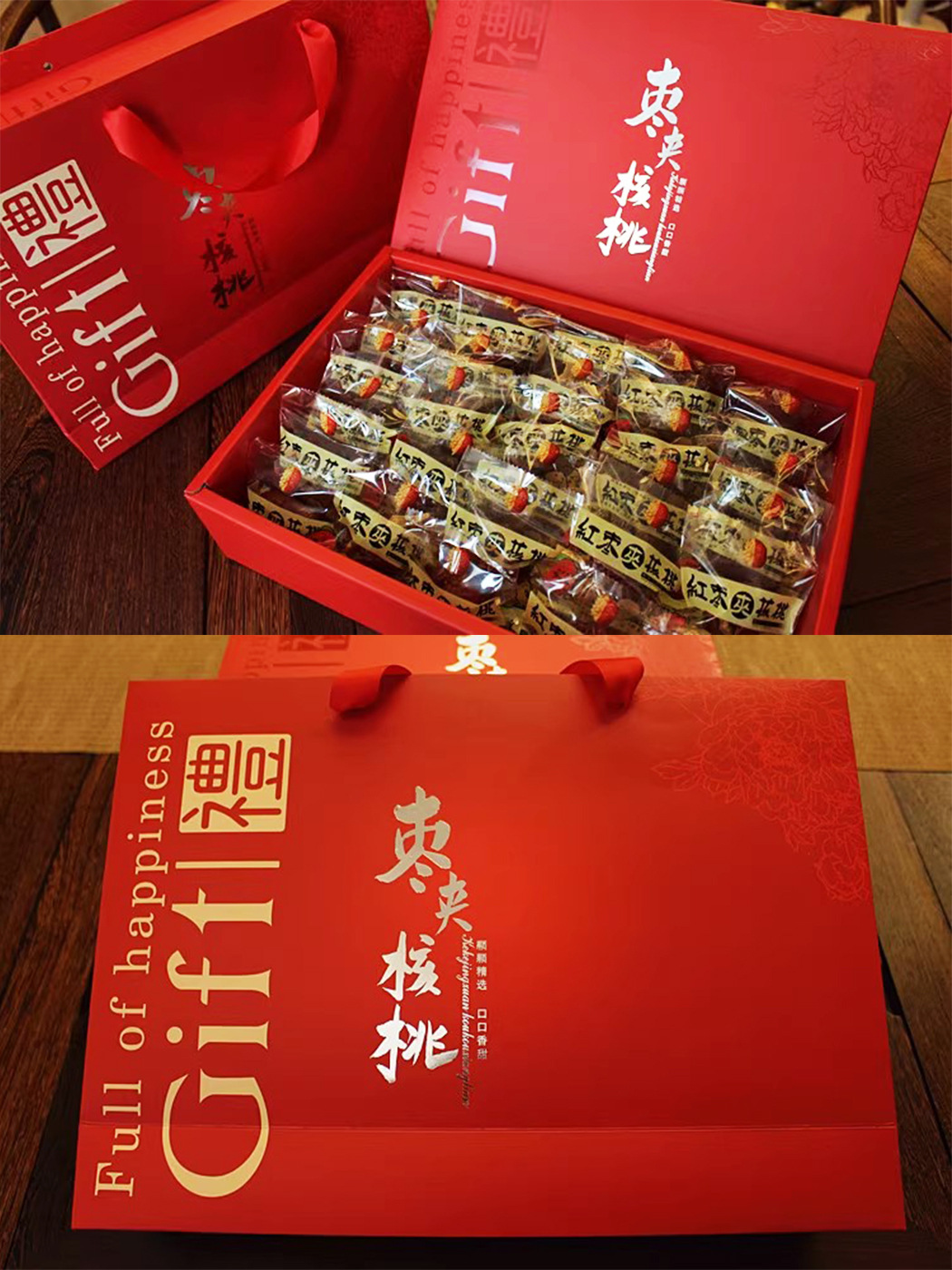 新型通用のナツメはクルミの赤いナツメを挟んで贈り物の箱を包装します。
