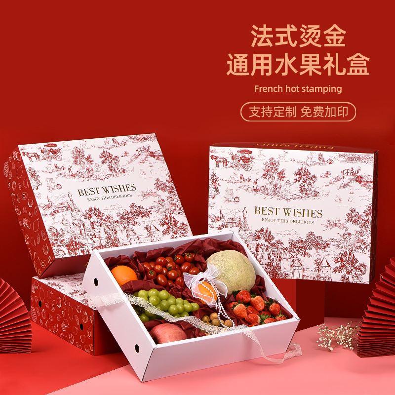 高級果物ギフトボックス二重混合新鮮果物包装箱年物創造花空箱印刷ロゴ