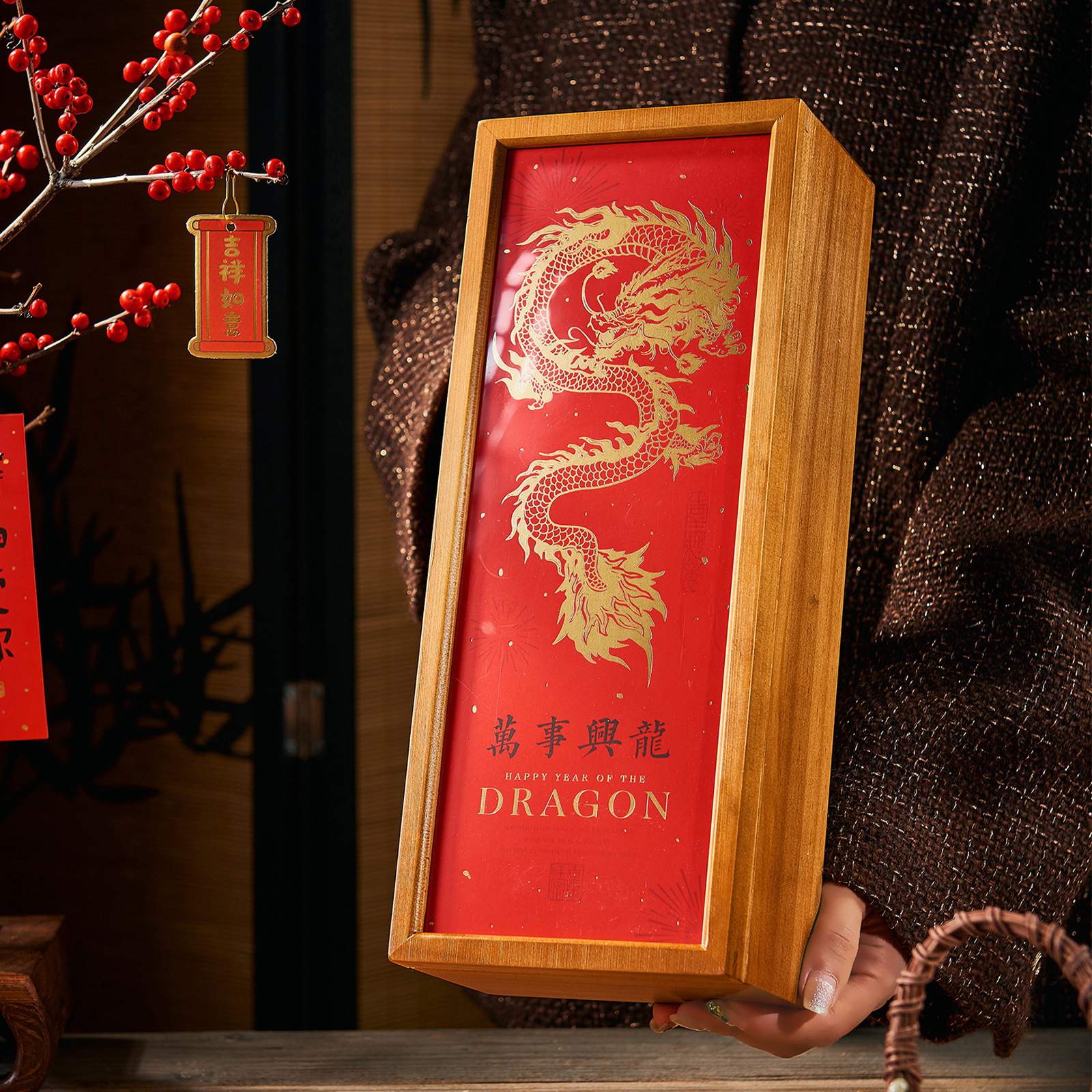 2024龍年高級実木新年礼箱包装箱手提げ牛圧延糖果ビスケットギフト箱新年礼箱
