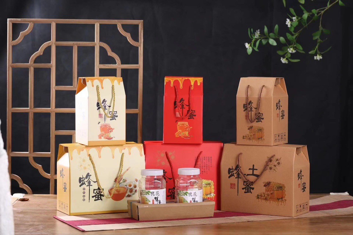 蜂蜜2斤 _ 4斤礼箱土蜂蜜包装箱にガラス瓶を含む空箱紙袋印ロゴ手提げ袋