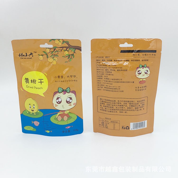 アルミ箔黄桃乾燥食品包装袋ナッツ自立自己密封袋食品真空チャック袋を専門に生産する