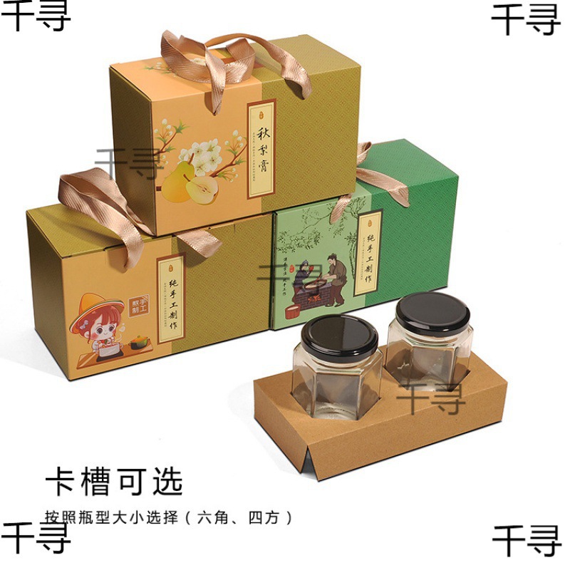 姜棗氷糖川貝ビワ陳皮レモンペースト秋梨ペーストガラス瓶2本包装紙箱ギフトボックス袋