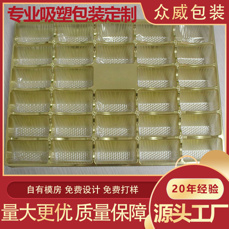 【源工場】カスタム高級環境保護ブリスターPVC包装箱チョコレート金色トレイ