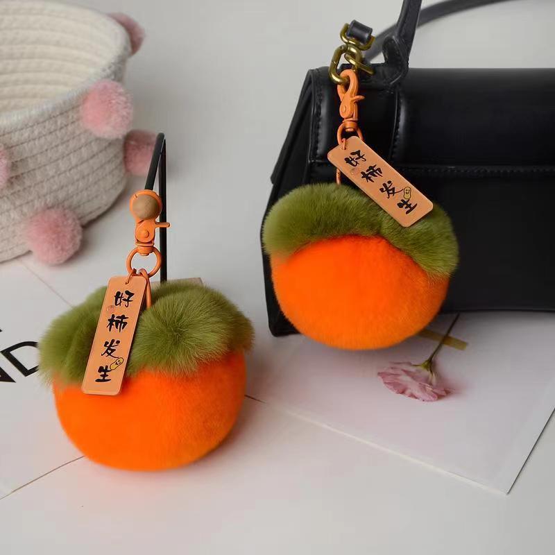 ウサギの毛の小さい柿のかわいいかばんの包みのペンダントの毛のボールの人形のぬいぐるみの車のキーは装飾の贈り物を掛けます。