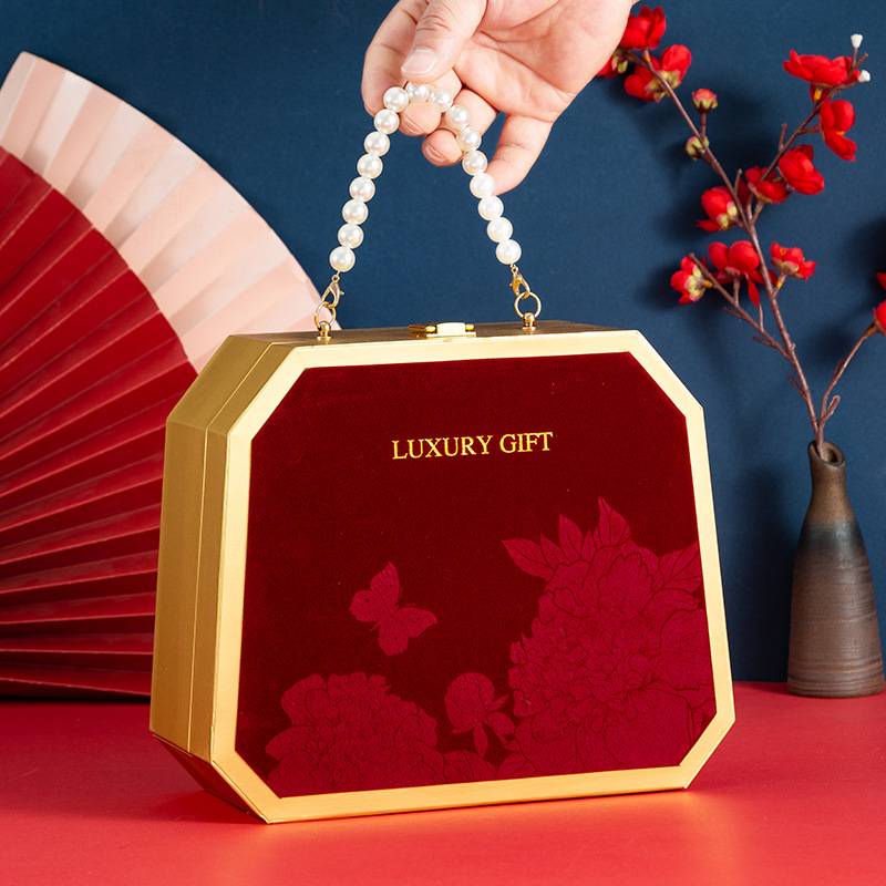 軽くて豪華なお土産の箱八角形のふたを開けて手提げの贈り物の箱の中国式の高級な結婚の喜糖の箱の七夕の贈り物の箱を持ちます。