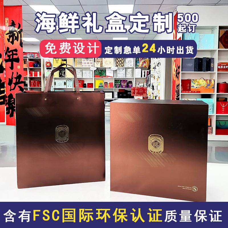 海鮮ギフトボックス大ギフトバッグ段ボールカラーフィルム手提げ包装箱無料デザイン印刷ロゴ冷凍品箱