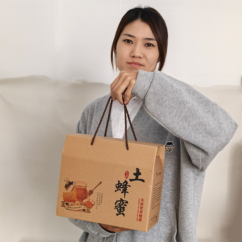 汎用牛皮蜂蜜包装ギフトボックスは、2本2斤または2本2斤を入れることができ、文字を交換して電話の住所を印刷することができる