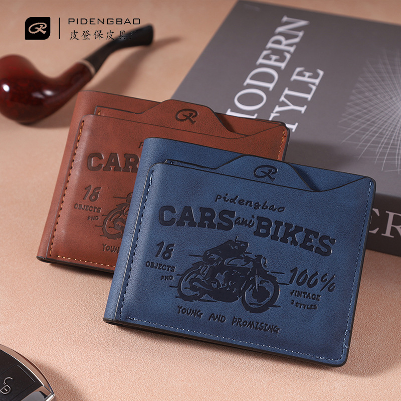 短い財布にジッパー付き男性用革クリップ横型男性用財布卸売り超薄学生二つ折りシンプルpu皮