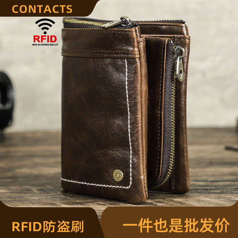 男性用の短い本革財布rfid防磁ヘッド層牛革欧米ファッションカジュアル財布