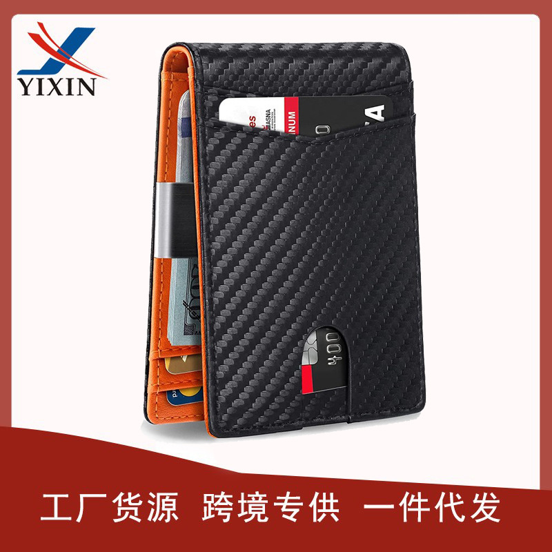 極めてシンプルな多機能大容量RFID遮断超薄型携帯型ドルクリップ超繊維男性財布カードバッグ