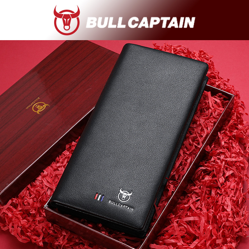 牛船長のbullcaptain本革男性のトップ牛革の長い財布は彼氏の夫の誕生日プレゼントを送ります。