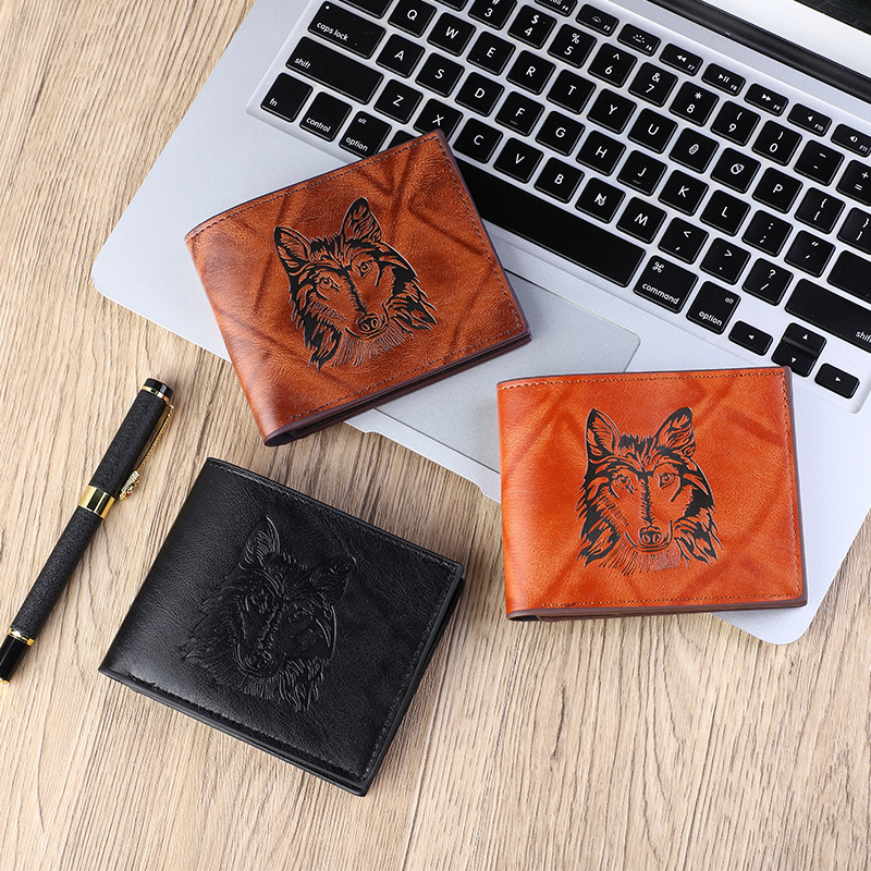 メーカーの現物の対外貿易は短い財布の復古風の男性の金の狼の頭のお金を採取してpuの革のカードを挟んで卸売りを包みます。
