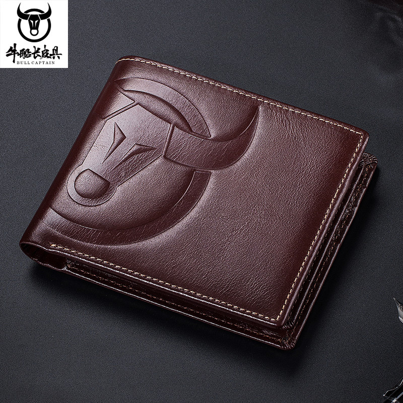 牛船長の革具の男性財布の短い本革の多カードのお金は誕生日プレゼントを挟んで彼氏の夫にプレゼントします。