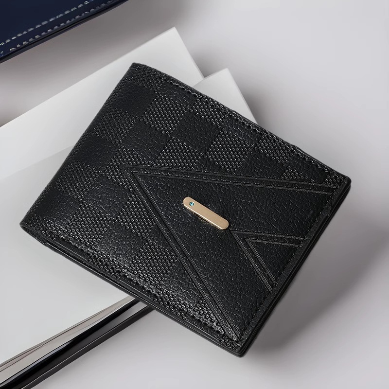 新品メンズ財布メンズショート財布若者ファッションチェック柄横型ソフトレザーホルダー大容量マルチカードホルダー財布