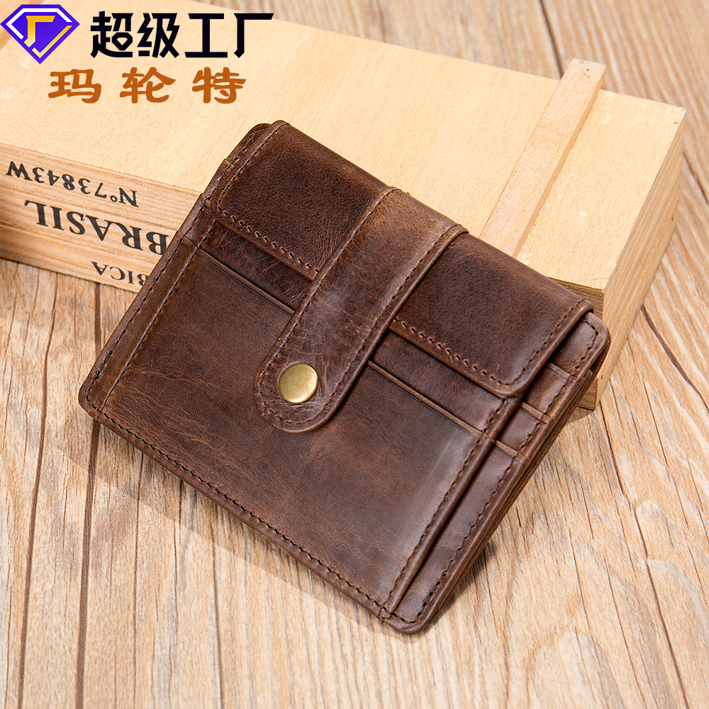 レトロな手作り財布男性本革カードバッグ長さの中で短いタイプの狂馬皮シンプルで超薄いタイプの財布多機能