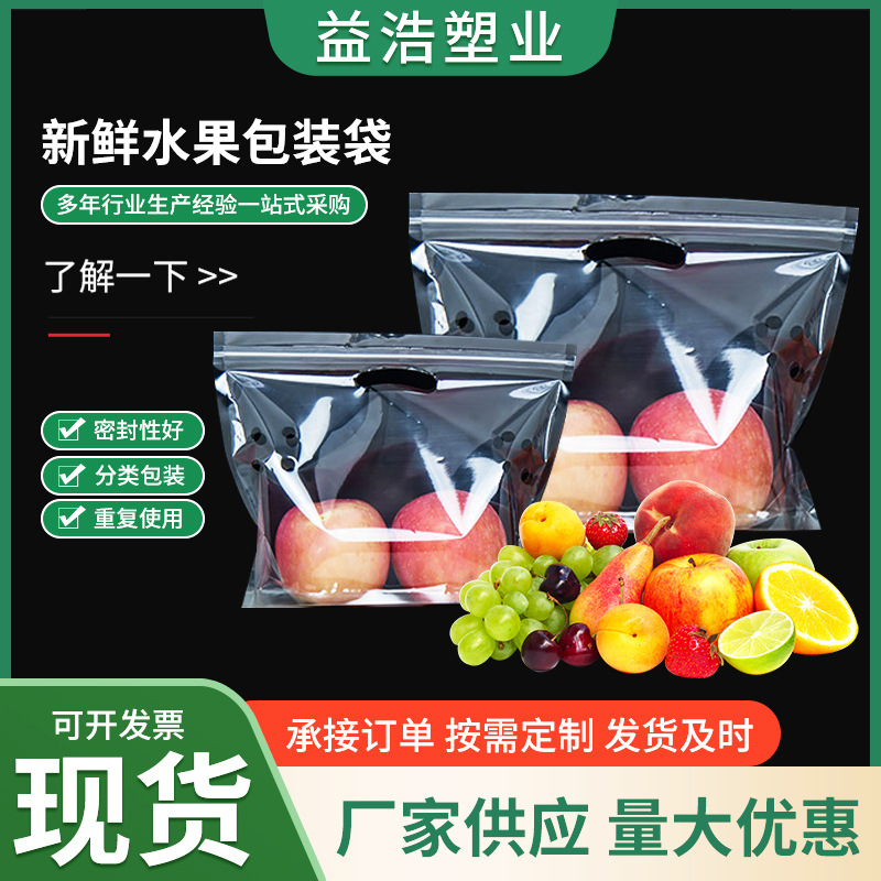 新鲜水果包装袋食品级塑料蔬菜水果袋多孔果蔬自立自封拉链袋
