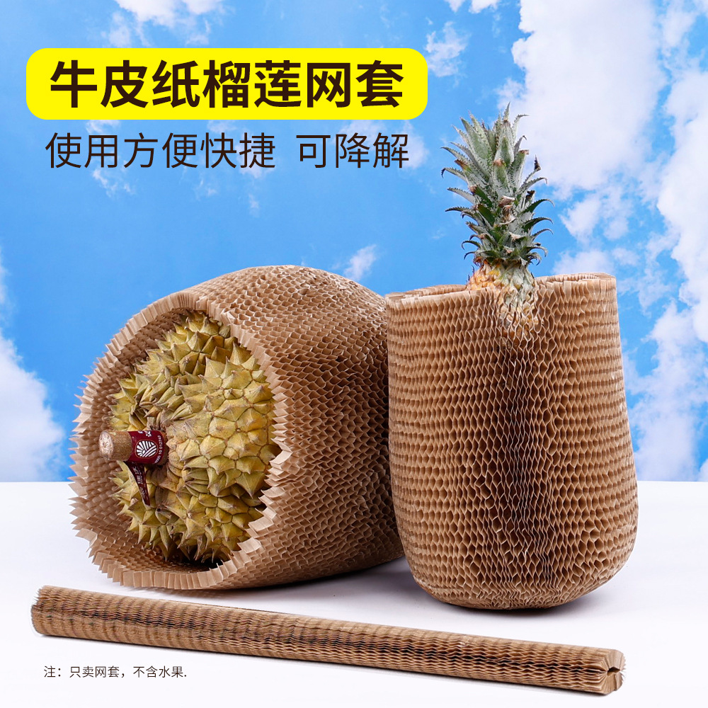 使い捨てフルーツネットドリアンパイナップルスイカ包装ネットバッグ衝突防止と刺し傷防止クラフト紙分解性包装