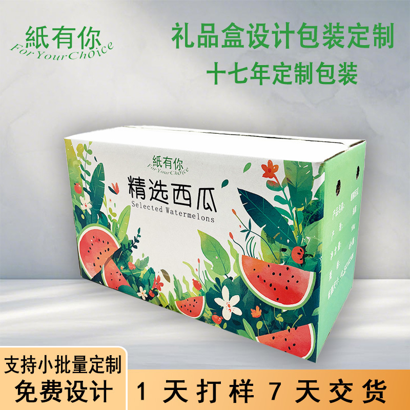 スイカカートン包装カラーボックスフルーツとメロン包装白ボール紙デジタル印刷工場直販小ロット最小注文