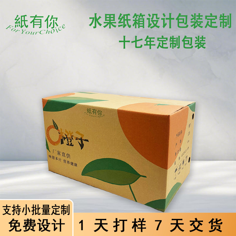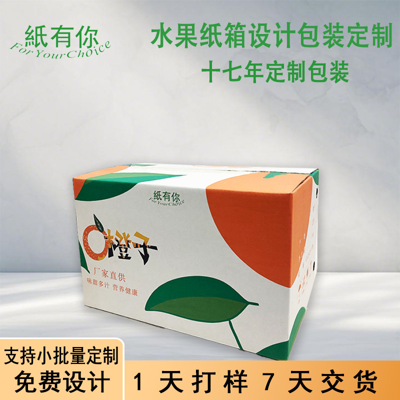 オレンジカートン包装カラーボックスフルーツ包装白ボール紙デジタル印刷工場直販小ロット最小注文