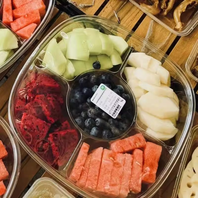 使い捨てフレッシュフルーツカット包装箱 5分割正方形プラッター包装箱 テイクアウト弁当箱 フルーツカット NOW同型