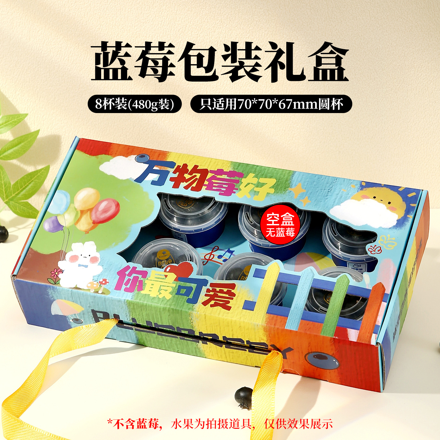 オリジナルデザインブルーベリー包装箱8杯60g丸カップ手提げ箱1斤入りブルーベリー包装箱包装空箱卸売り