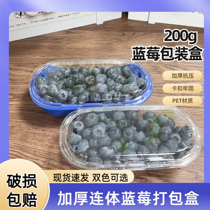 200gブルーベリー箱ラズベリーパッキングケース厚い透明プラスチックシール青底使い捨てブルーベリー包装箱
