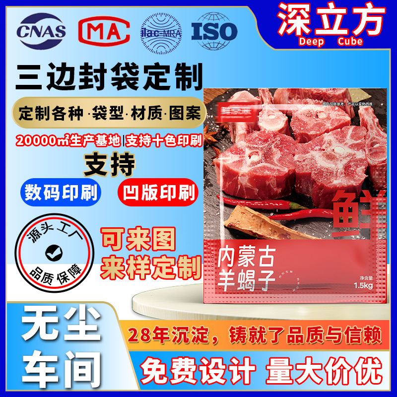 プラスチック食品包装袋羊肉UV複合食品密封袋高温蒸煮袋三辺封自立自封袋