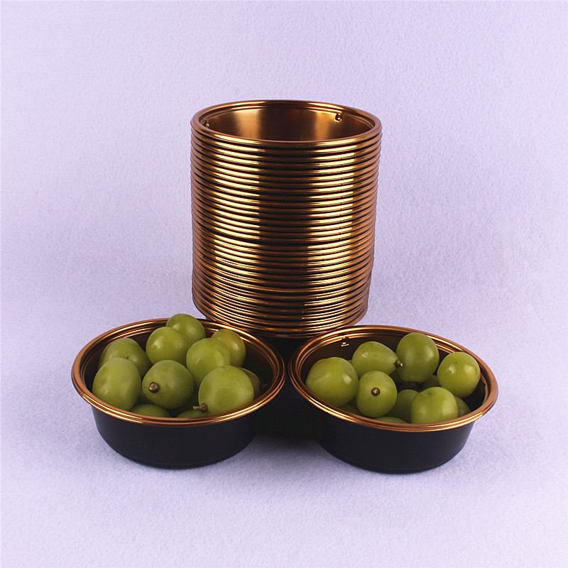 250g金色果切箱使い捨て円形プラスチックブリスター包装箱蓋付きサラダ果すくい包装箱の出前
