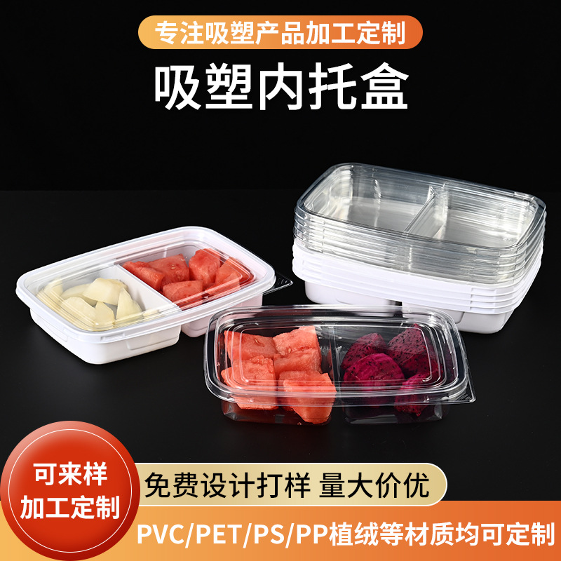 卸売り使い捨てスーパー果物野菜トレイ黒色無蓋果物野菜ケースPET食品級果物野菜包装ケース