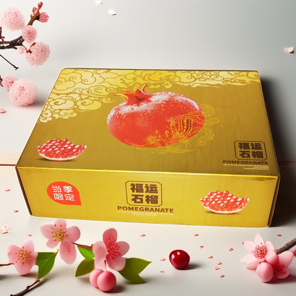 特製会理石榴包装ギフトボックス空箱、チュニジア産ソフトシード石榴包装ギフトフルーツバスケット紙箱