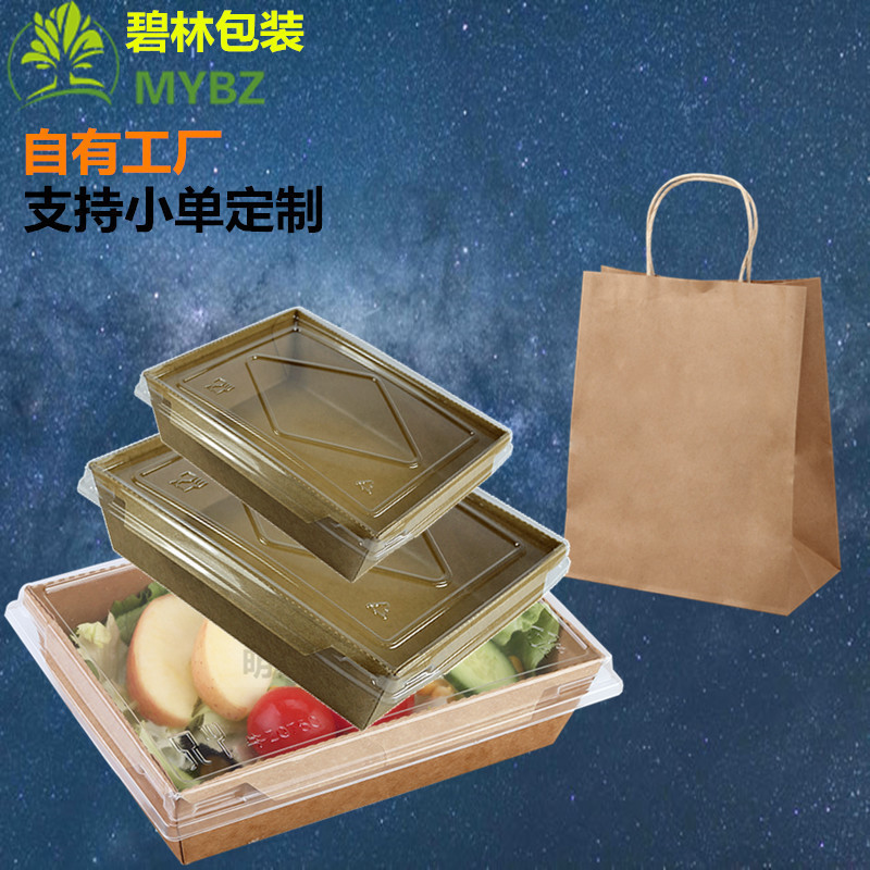 使い捨て牛革紙箱天窓展示出前包装蓋弁当箱とロゴ寿司果物サラダ