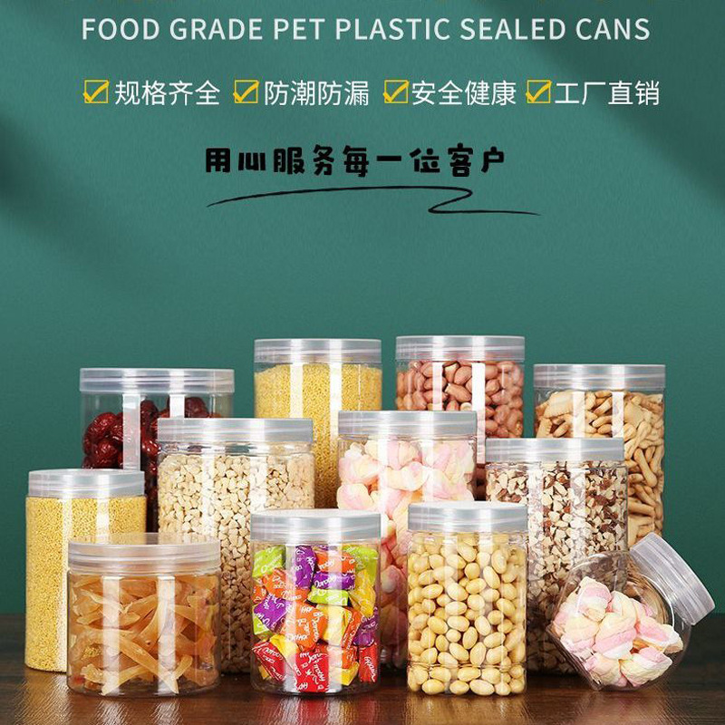 透明プラスチック缶密封缶食品級貯蔵タンク蓋付き五穀雑穀乾燥果茶葉pet包装缶
