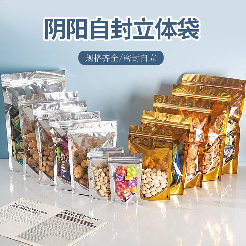 半透明アルミ箔陰陽ジップロック袋食品袋増粘スタンドアップバッグスナック保存密封包装袋