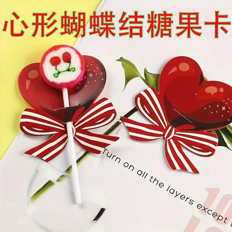 50ピースハート型ちょう结びキャンディーカード、装饰ロリポップカード、结婚式ギフト包装装饰、バレンタイン