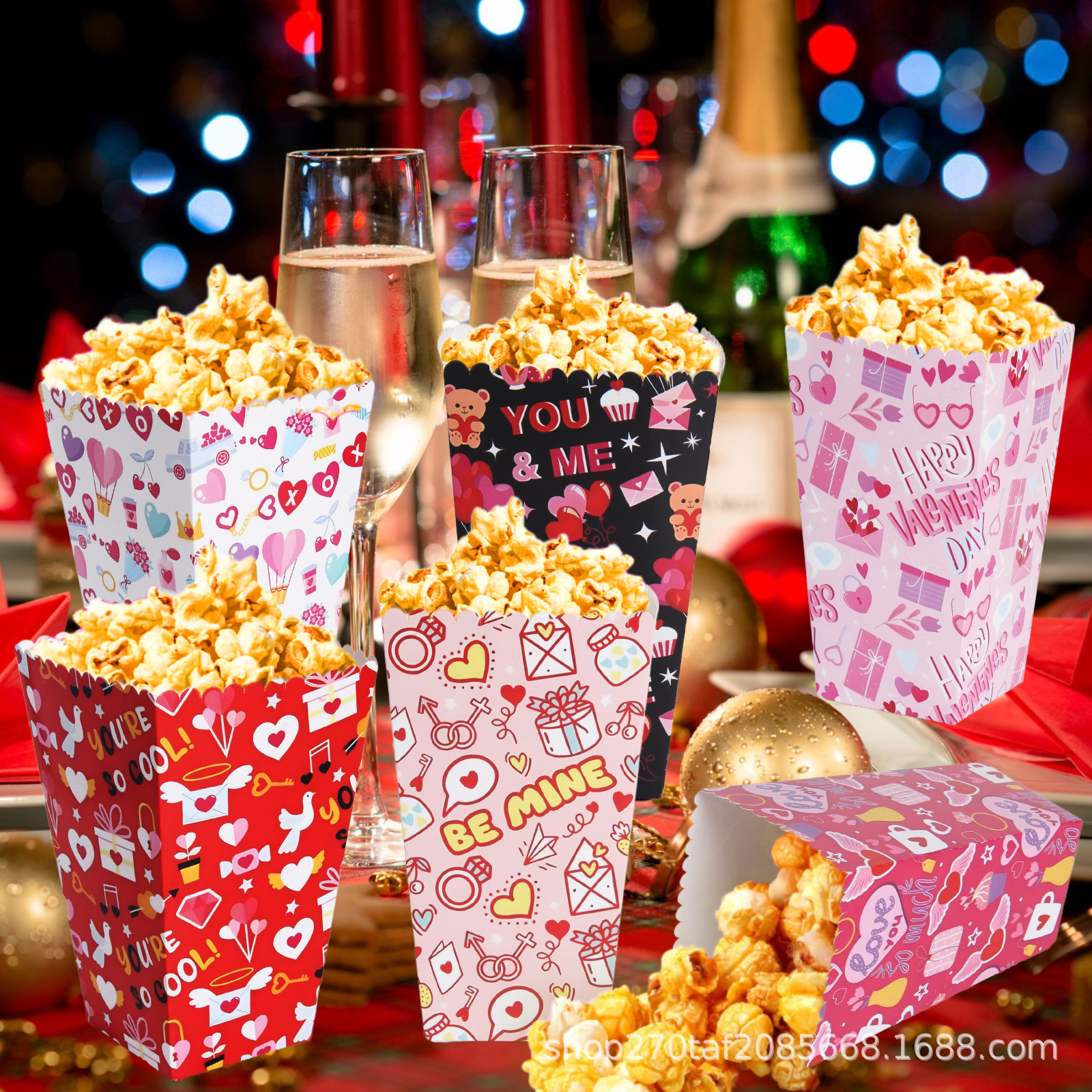 国境を越えた新しいバレンタインデーパーティーポップコーン箱バレンタインデー愛テーマポップコーンパーティー装飾弁当箱