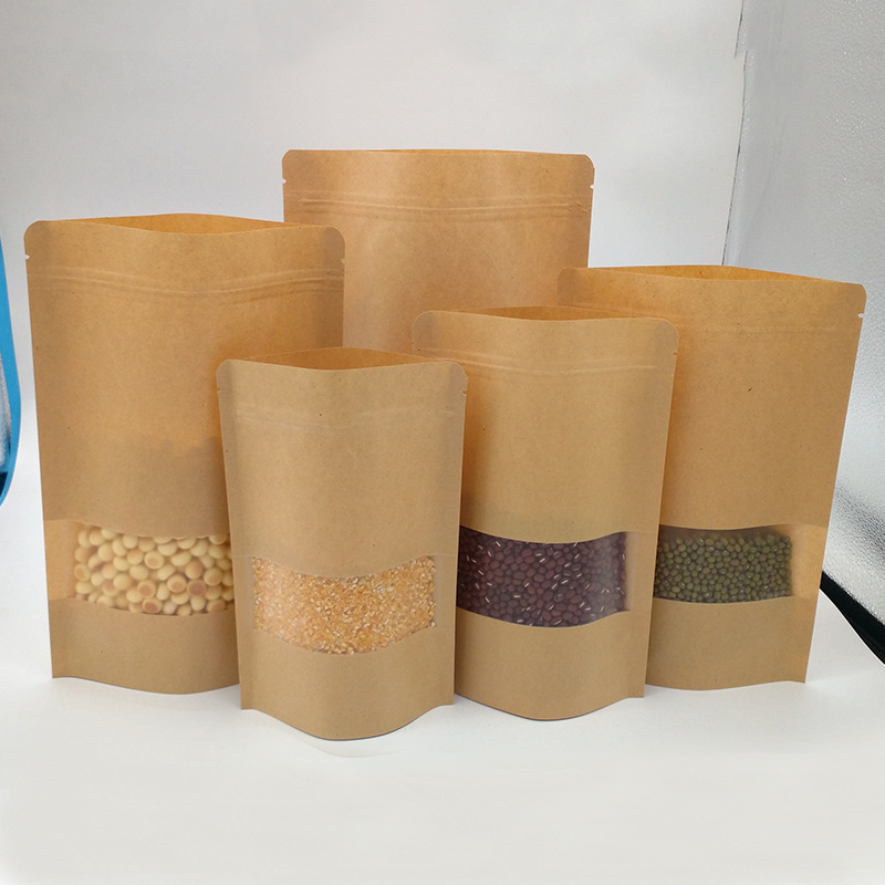 高精細窓付き牛革紙自立袋密封ドライフルーツ包装袋ナッツ牛革紙袋牛革紙ジップロック袋