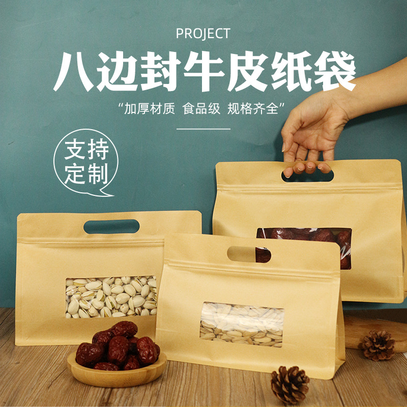 卸売り窓開けクラフト紙袋ナッツ間食自立自封袋茶葉密封袋クラフト紙食品包装袋